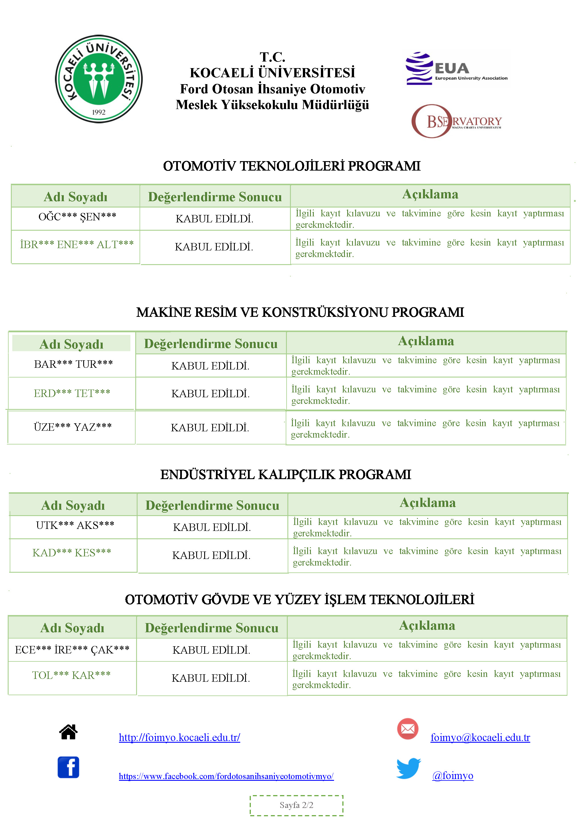 Sonuçlar ekli dosyada sunulmuştur. Öğrencilerimiz kayıt ile ilgili detaylara aşağıdaki bağlantı üzerinden erişebilir.
